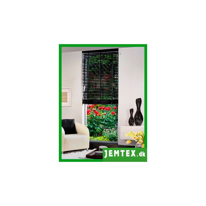 50 mm Sort træpersienne m/sorte stigebånd - PIANO lak